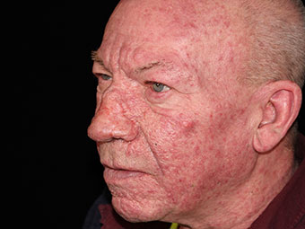 Two months post correction of sever rhinophyma with full thickness skin grafts.